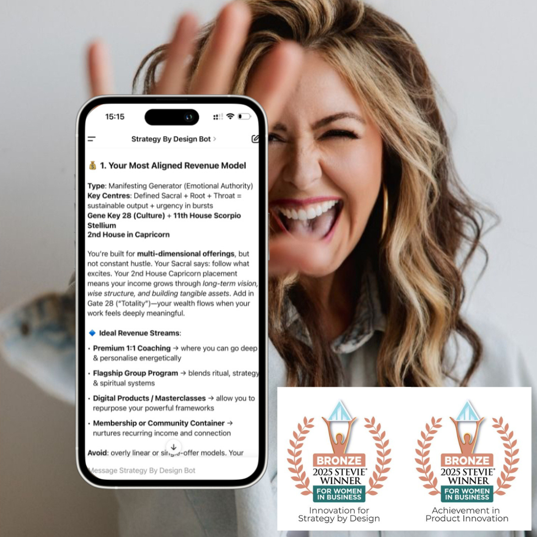 It reads the strategy encoded in your Human Design, Astrology, and Gene Keys®, so you stop downloading someone else’s method and start listening to the one that’s been inside you all along.