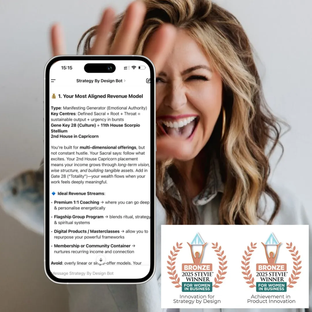 This session is powered by your energetic design. Using the lens of Human Design, Astrology and informed by Sassy, our AI strategist built for founders like you, this is not generic consulting. It is precision strategy, built around how you are designed to lead and grow.